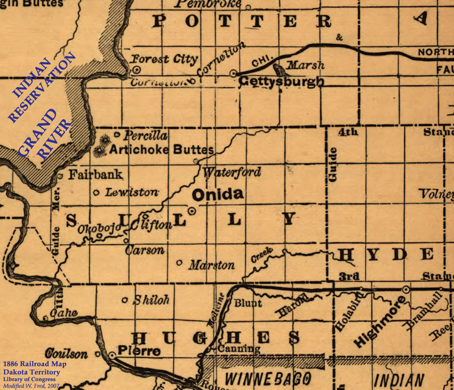 - Federal Land Entry File (Pre-Emption), Sully Co., South Dakota (range 77, township 115, section 21), 24 Sep 1889, NARA, 700 Pennsylvania Avenue, NW, Washington, DC 20408